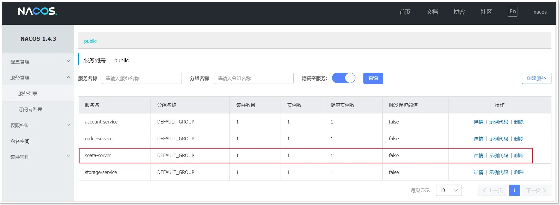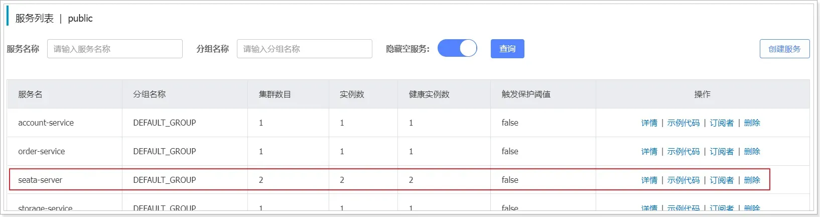 打开浏览器,访问nacos地址:http://localhost:8848/nacos,然后进入服务列表页面,可以看到seata-server的信息: