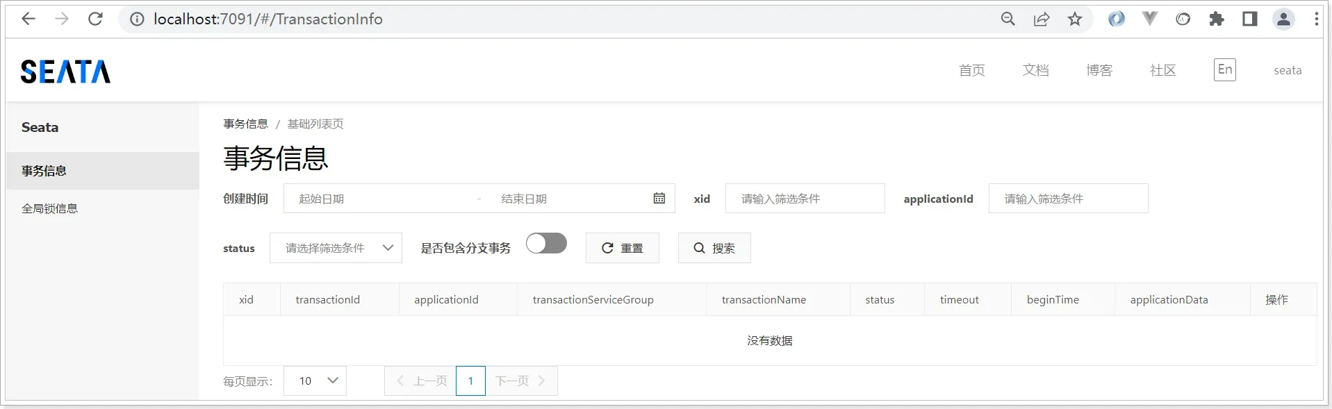 进入bin目录,运行其中的seata-server.bat即可,启动成功后,seata-server应该已经注册到nacos注册中心了。打开浏览器,访问seata控制台;地址:http://localhost:7091