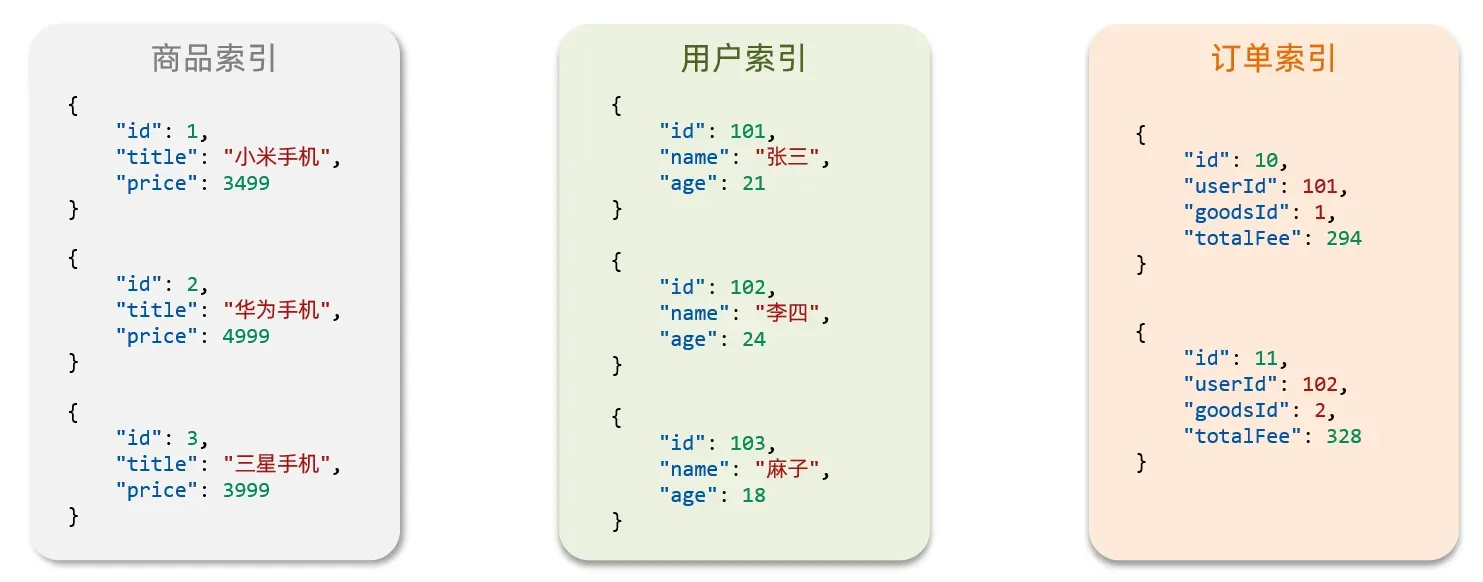 elasticsearch是面向文档(Document)存储的,可以是数据库中的一条商品数据,一个订单信息。文档数据会被序列化为json格式后存储在elasticsearch中:
