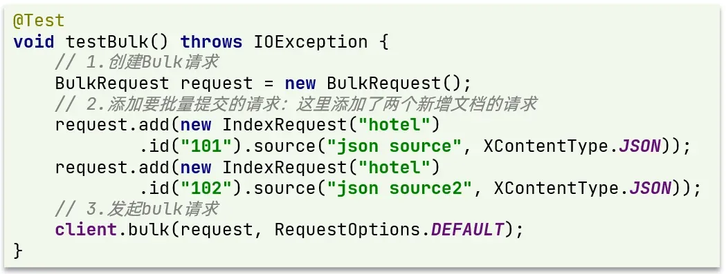 ● 利用JavaRestClient中的BulkRequest批处理,实现批量新增文档