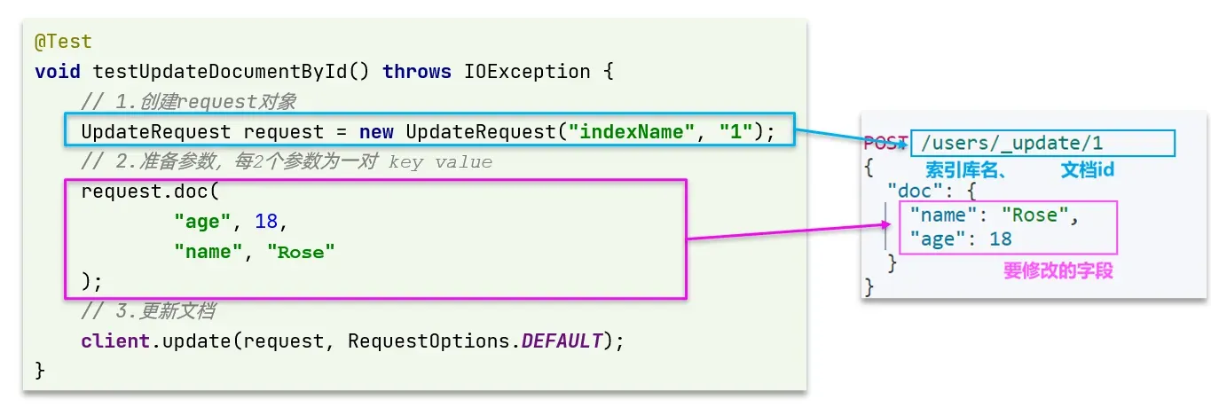 ●发送请求。调用RestHighLevelClient#.xxx()方法,xxx是index、get、update、delete、bulk