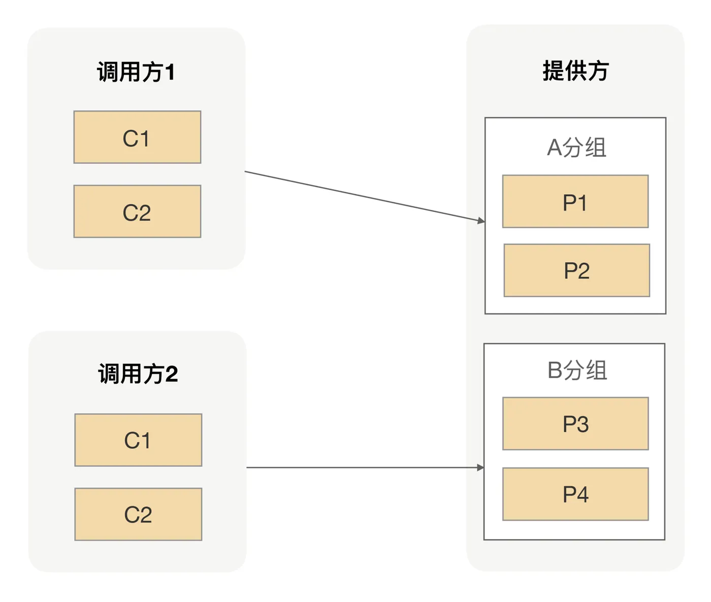 在前面我们也说了,调用方应用服务发现的时候,除了带上对应的接口名,还需要带上一个特定分组名,所以对于调用方来说,它是拿不到其它分组的服务节点的,那这样的话调用方就没法建立起连接发请求了。