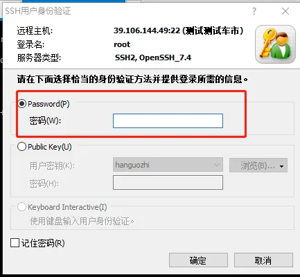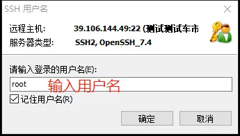 - 点击「用户身份验证」,输入「用户名」(Linux 默认root或admin,不同镜像可能不同,如 Ubuntu 默认ubuntu);
