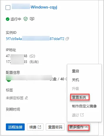 - ⚠️ 注意:若服务器挂载了数据盘,重置系统不会删除数据盘数据,但需重新挂载才能使用。