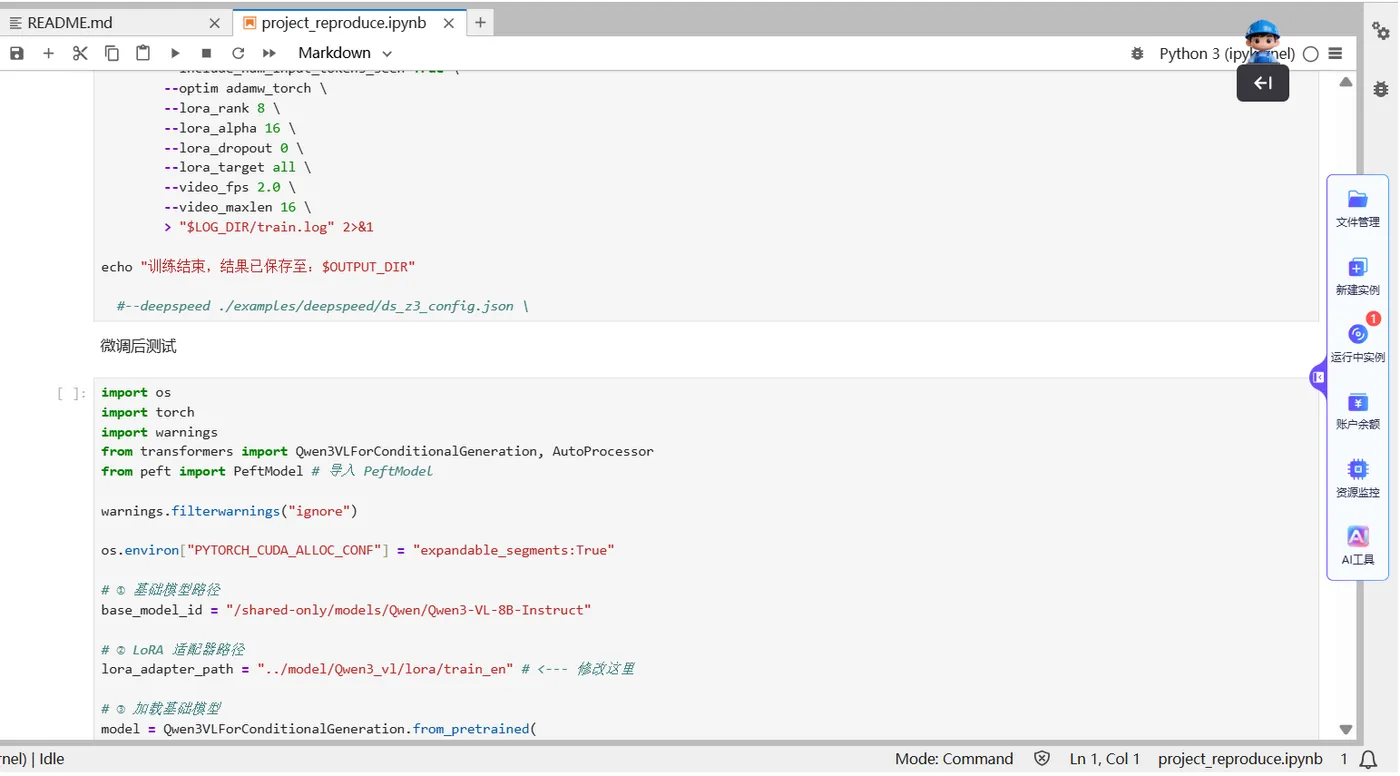 在项目复现中的 “快速体验demo” 中进行快速体验,参考步骤进行操作,即可立即观察到基线模型和微调后模型的区别。
