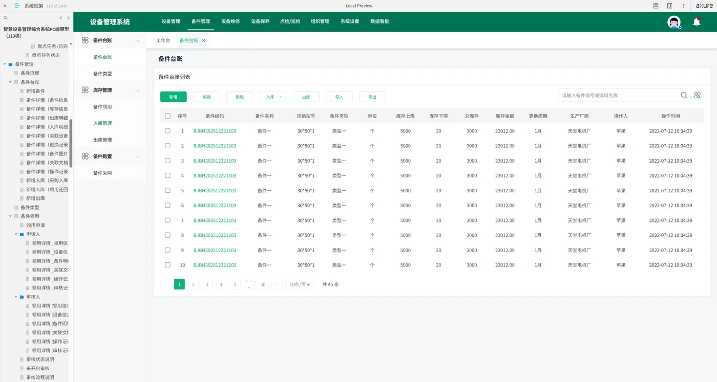 - 集成库存管理功能,清晰记录备件的入库、出库(关联维修、保养等领用类型)、盘点、库存预警等信息,确保维修资源可得,同时控制库存成本。