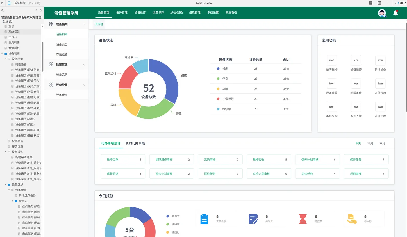 原型详细呈现了以下核心管理模块,构成了一个立体化、协同化的设备管理矩阵: