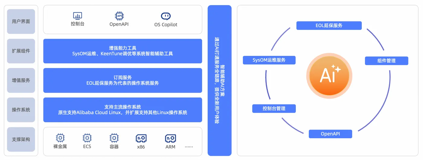 操作系统控制台是阿里云自研的操作系统管理平台,覆盖主流Linux操作系统,旨在为客户提供便捷易用、高效、专业的操作系统生命周期管理能力,包括运维管理、操作系统智能助手OS Copilot、订阅等功能,支持通过界面、OpenAPI、MCP、CLI等多种方式提供服务。致力于降低操作系统的技术门槛,通过系统解决客户应用与云平台运维信息不对称等问题,提升用户的云上体验。操作系统控制台智能运维可以让用户摆脱冗长的运维垂直栈和分析链,让平台更懂用户业务的异常根因,懂资源的消耗。