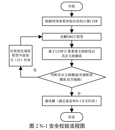为保证电网的物理安全,调度方案必须满足N-1静态安全准则,即系统中任意一条线路故障,其余线路不会发生过载。