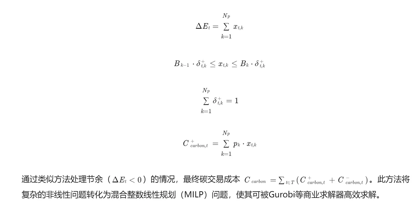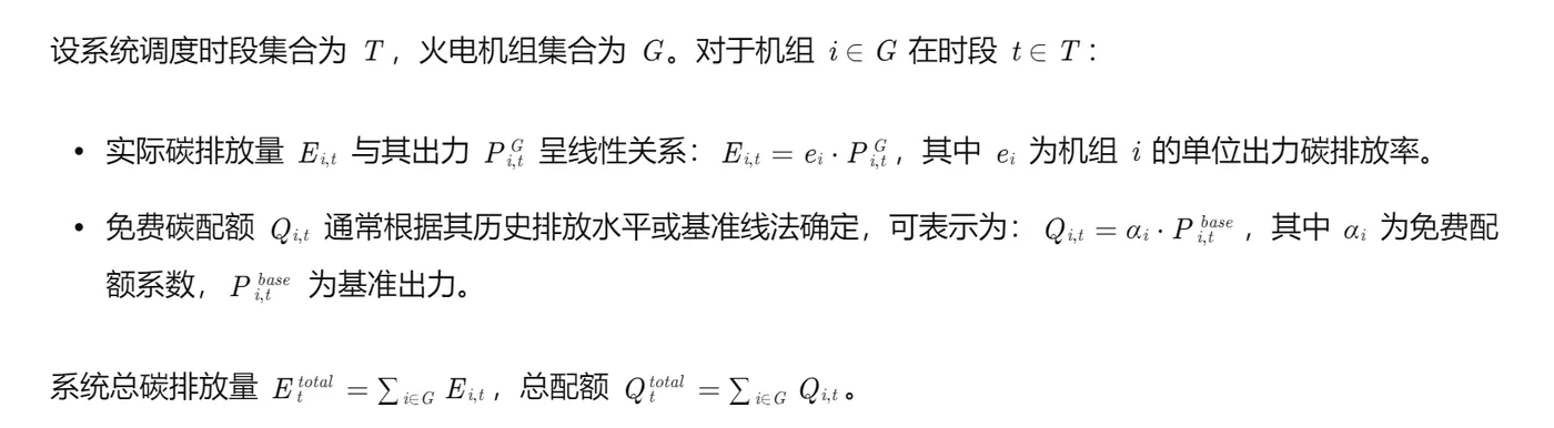 碳交易成本是模型的核心难点之一。其计算依赖于火电机组的总碳排放量与政府分配的免费碳配额之间的差值。