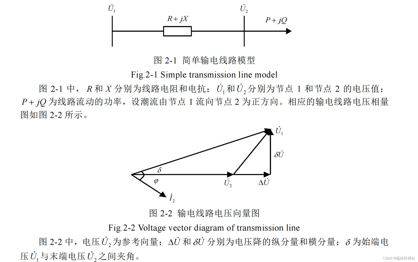 由式(2-2)可以看出,无功的大小和流动方向与线路两端电压的大小有关,即由高电压