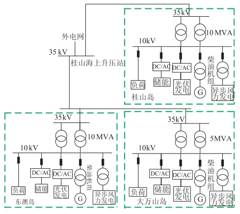 - 分层结构:如桂山海上升压站与东澳岛微电网通过35kV线路互联,含光伏、储能和柴油机组。
