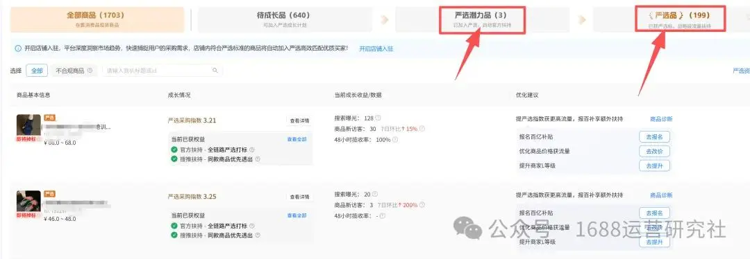近期,1688严选商品针对供应链的能力了升级,推出了全新的成长体系,表示用AI的能力,为加入严选的商品进行智能诊断、智能优化等策略,在加入过程中的一些坑,运营一定要注意!