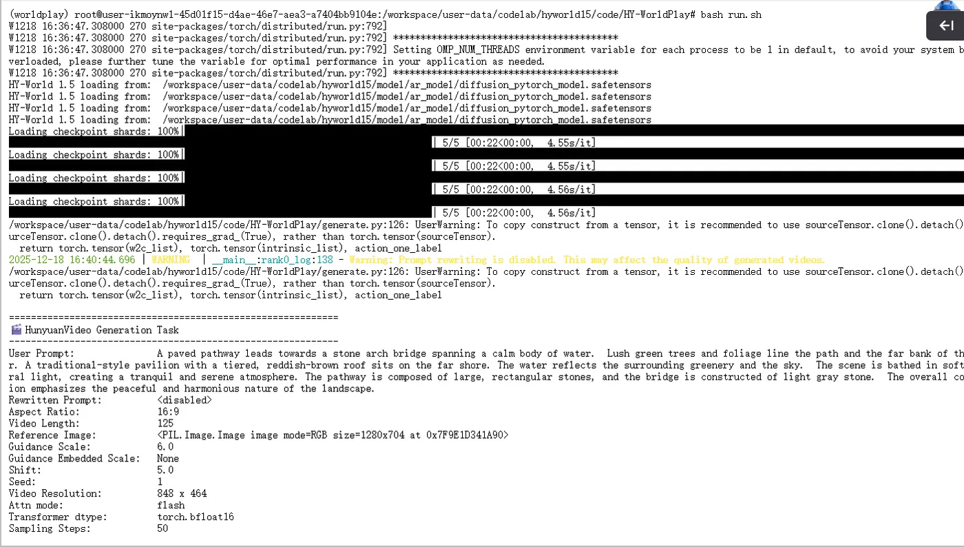 所有模型已经部署完成,运行bash run.sh后,即可开始体验HY-World 1.5的强大推理能力,快速生成虚拟世界的视频内容。