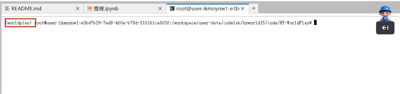 进入项目页面后,打开code文件夹下的推理.ipynb文件。在终端中激活所需环境,执行命令conda activate worldplay,出现下图即成功激活。