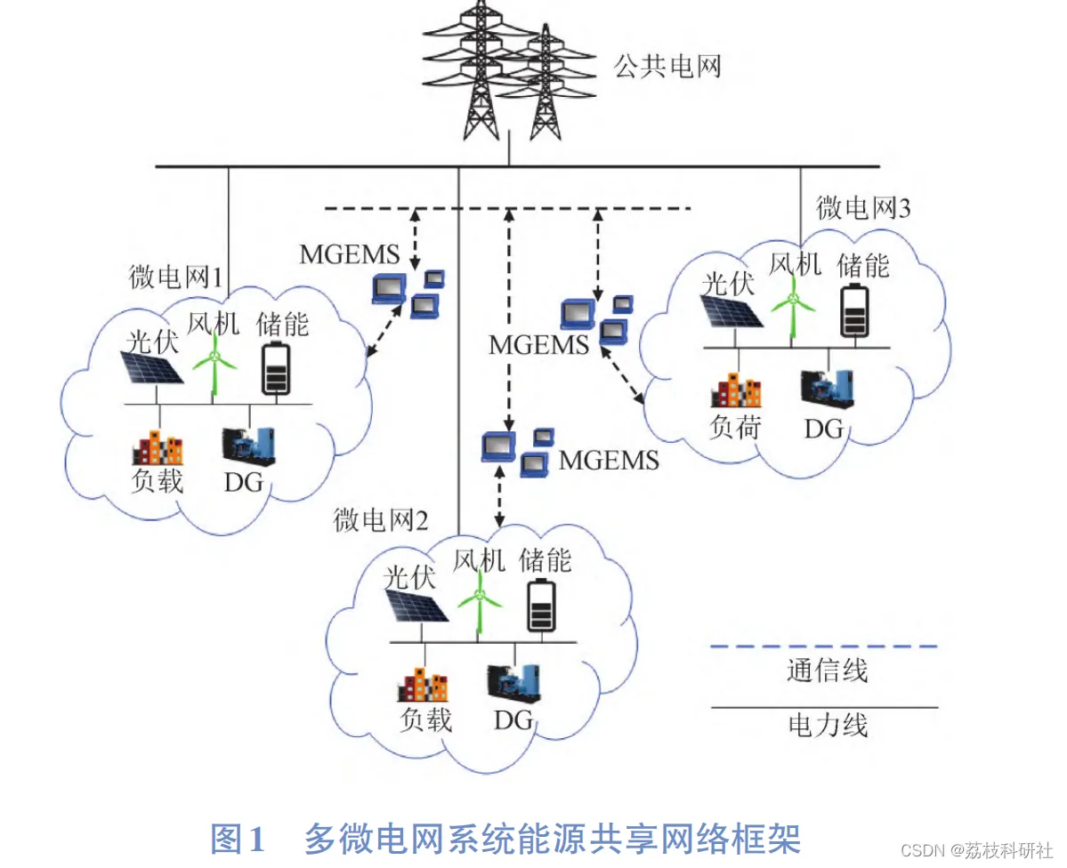 - 分布式结构:各微电网作为独立实体,通过P2P电能交易实现去中心化交互。