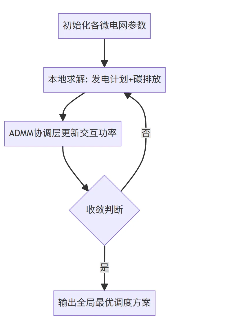 通过ADMM与碳排放模型的深度融合,多微电网系统可在保证隐私的前提下实现经济与环保的双重优化,为构建新型电力系统提供关键技术支撑。
