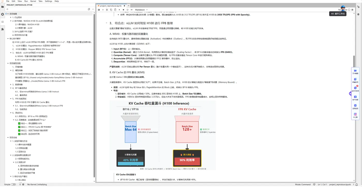 而在最新的迭代中,vLLM 针对 H100 进行了深度适配,支持了 FP8 权重量化与 KV Cache FP8 压缩。
