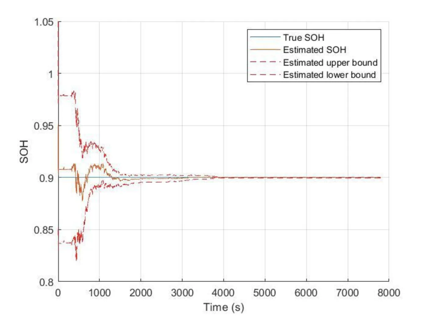 通过容量衰减模型估计SOH,UKF的SOH估计误差小于1.5%,EKF误差约2.0%。混合滤波策略在SOH估计中未显著提升精度,但计算效率提高20%。