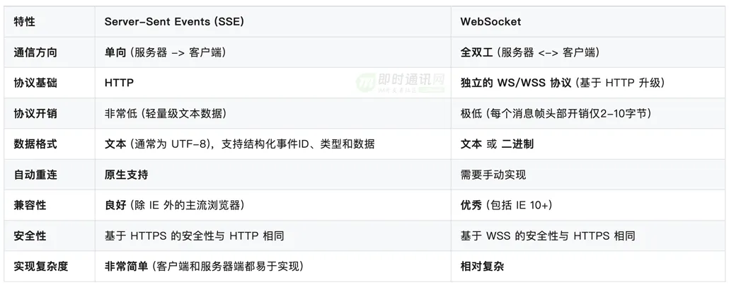 - a. 这是 SSE 的“杀手级特性”。网络连接不稳定是移动端的常见问题。如果用户在接收一个很长答案的过程中网络中断,SSE 会在网络恢复后自动重新连接。