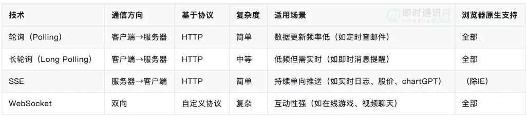 - 网页端IM通信技术快速入门:短轮询、长轮询、SSE、WebSocket