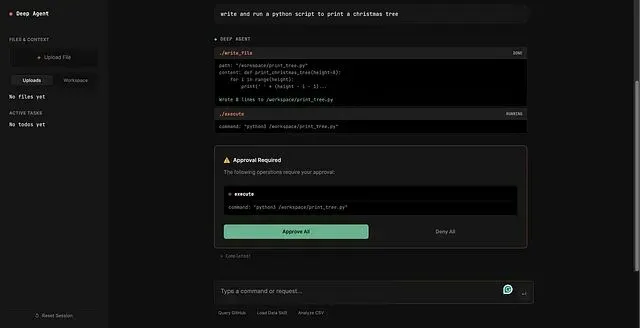 官方仓库里直接给了一套全栈 Demo(FastAPI 后端 + 流式 Web UI)。跑起来能看到 Agent 的完整思考过程(Reasoning traces),包括文件上传处理、人工审批步骤以及流式响应的效果,代码本身很有参考价值。