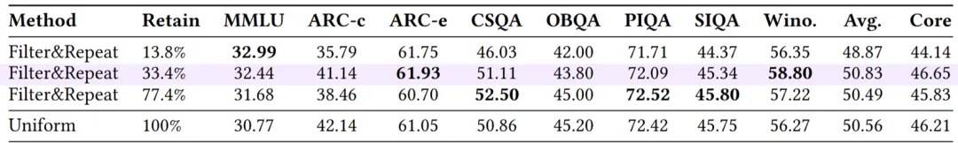 - Top 10% 的高质量数据在整个训练过程中出现多次
