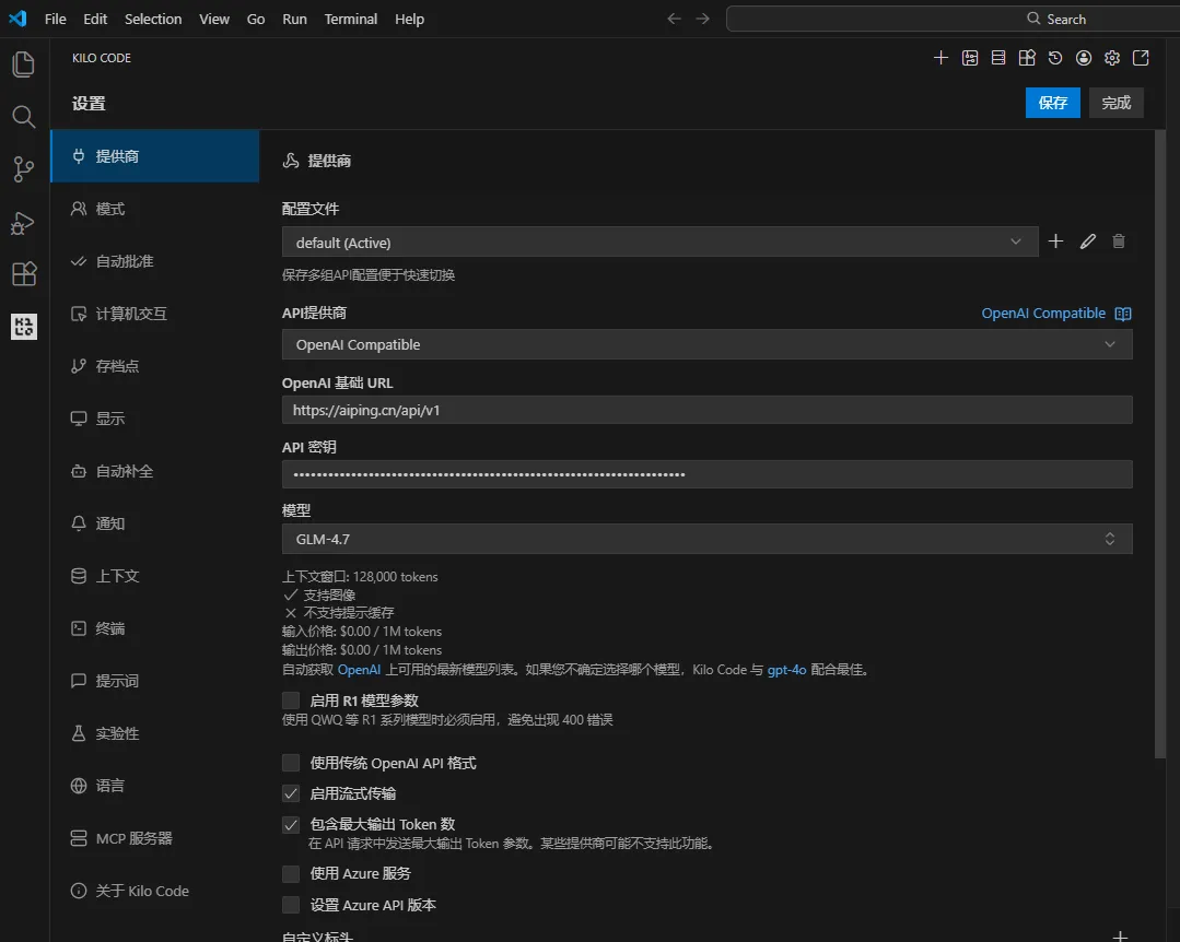为了更贴近日常开发流,我选择使用 Kilo Code —— 一款开源的 VS Code AI Agent 插件(GitHub 可查)。它支持多步任务规划、自动文件创建、模型切换等功能,适合测试模型在复杂任务中的协同能力。