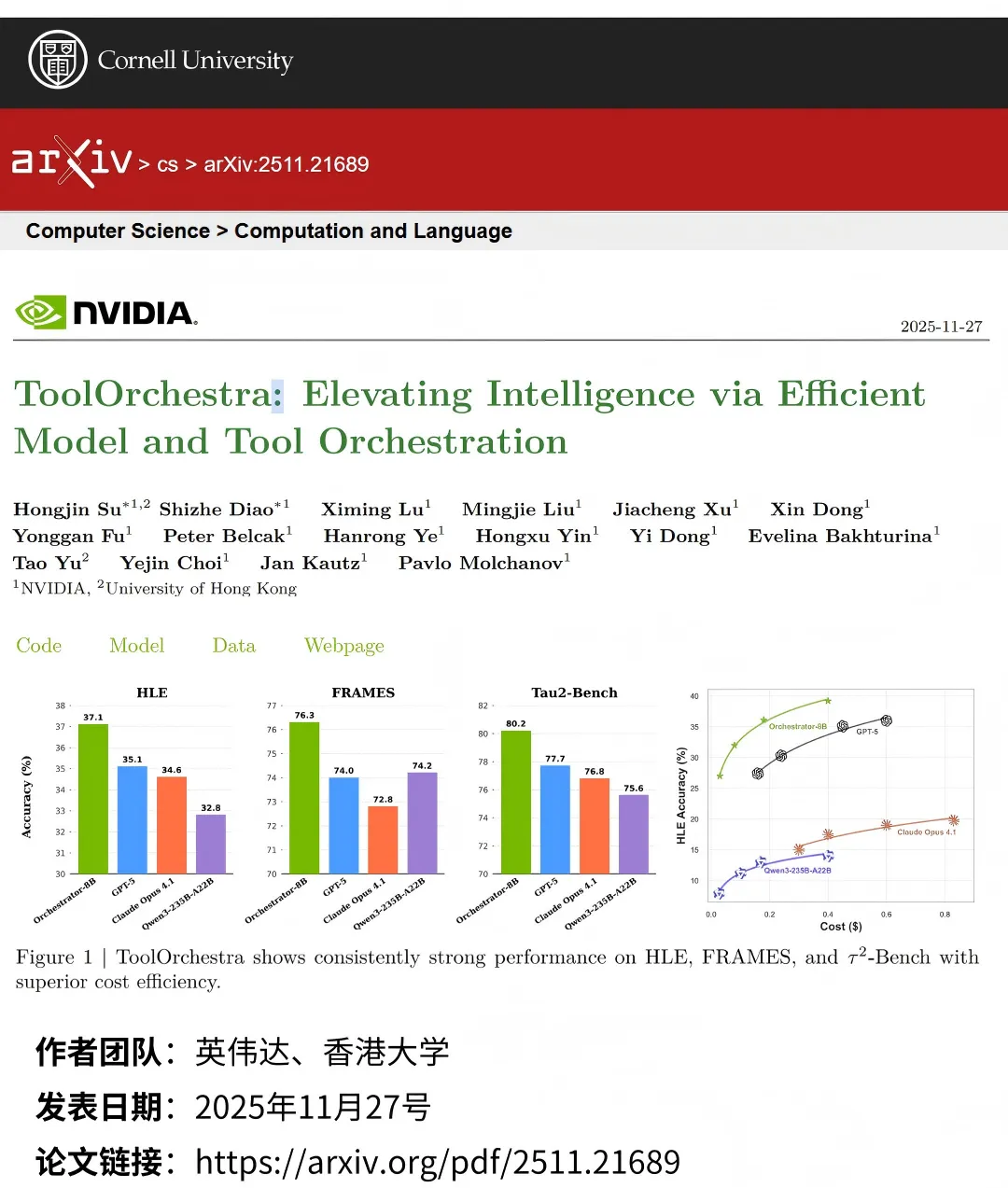 论文标题:ToolOrchestra: Elevating Intelligence via Efficient Model and Tool Orchestration