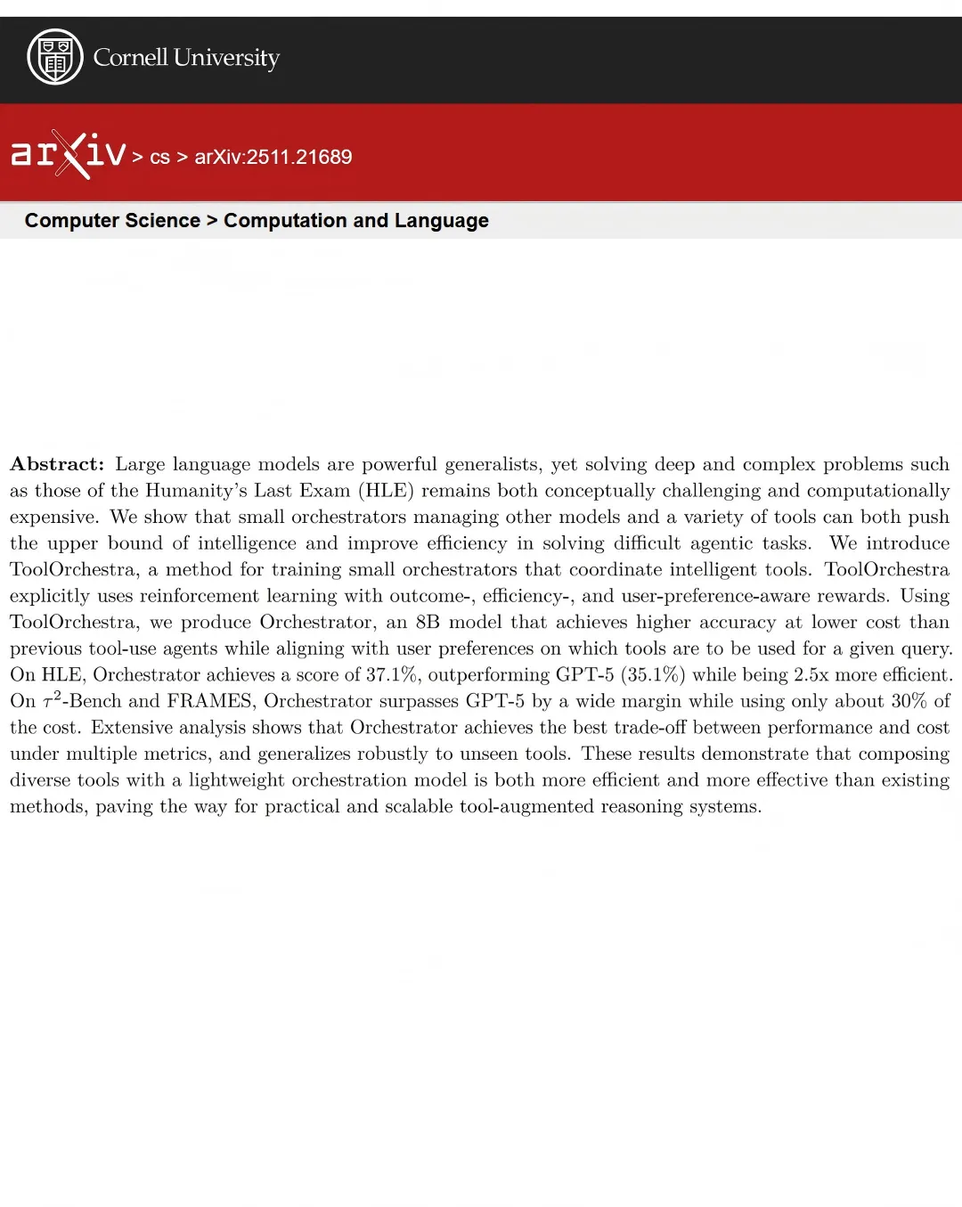 - 证明小型编排模型在复杂任务上可超越大模型,为低成本、可扩展的AI系统提供新思路。
