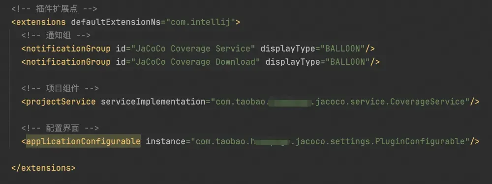 这些action、service和configure需在插件配置中注册生效。projectService和applicationConfigurable为IDEA的扩展点: