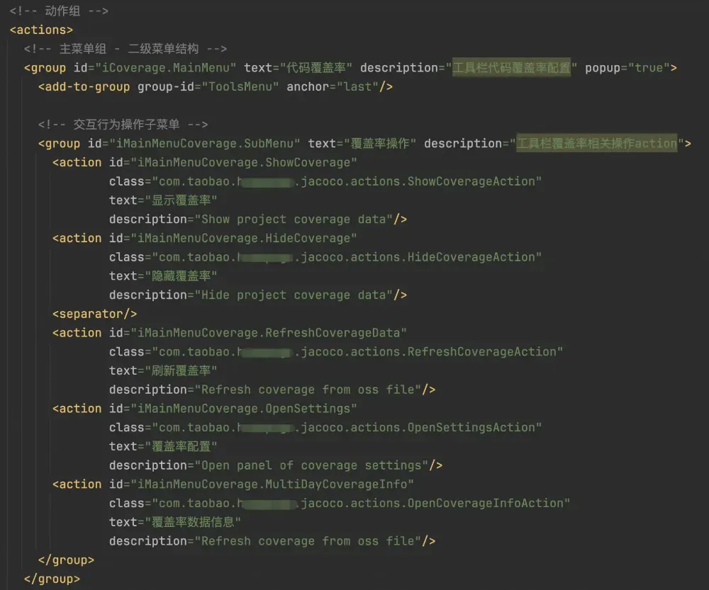 action: 用于在IDEA内交互的行为处理,比如显示代码覆盖数据/隐藏代码覆盖率数据;