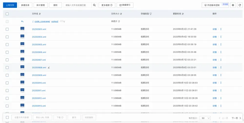 上述代码复用了JaCoCo的FileOutput类,JaCoCo也是依赖这个类的writeExecutionData()实现采集数据写磁盘。采集的数据dump后上传到oss,按照日期做了归档。dump的周期是每天凌晨,这样保证对dump数据做分析时代码是最新部署的。