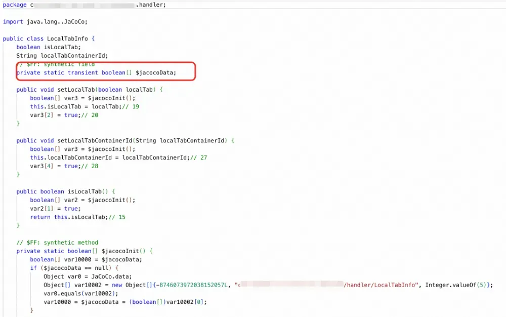 JaCoCo使用的探针为$jacocoInit[boolean]数组,数组长度为类的探针数量,由CFG(Control Flow Graph, 控制流图)分析得到,将代码划分为代码块,$jacocoInit的每个位置代码一个代码块入口,$jacocoInit[n]=true则表示整个代码块都被执行。