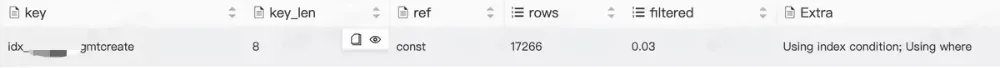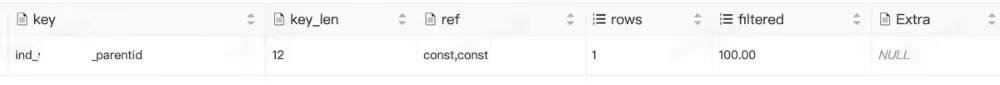在dms上通过force index指定索引的方式复现了上述问题,发现走老索引没问题,走新索引有问题,二者的explain差异如下: