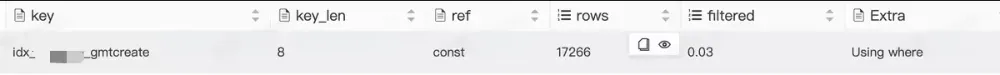 4. 索引静默完成后,需要挑选一条真实的慢SQL在dms上执行explain命令,验证新索引生效了,老索引不可见,验证没问题后,需要线上观察一周左右。