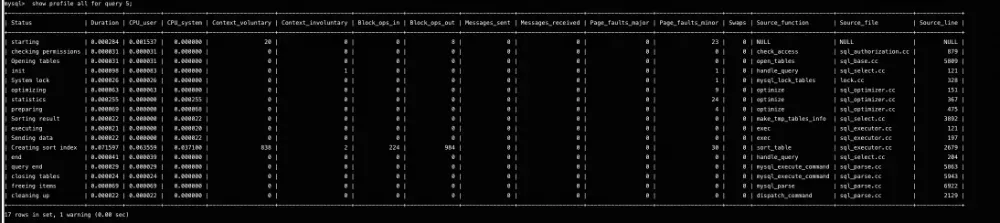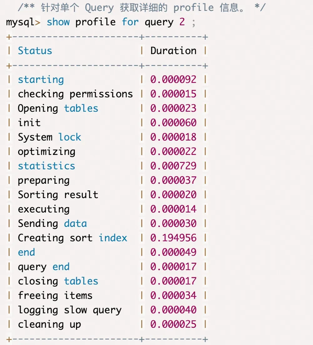 - 13.7.5.30 SHOW PROFILE Statement:https://dev.mysql.com/doc/refman/5.7/en/show-profile.html