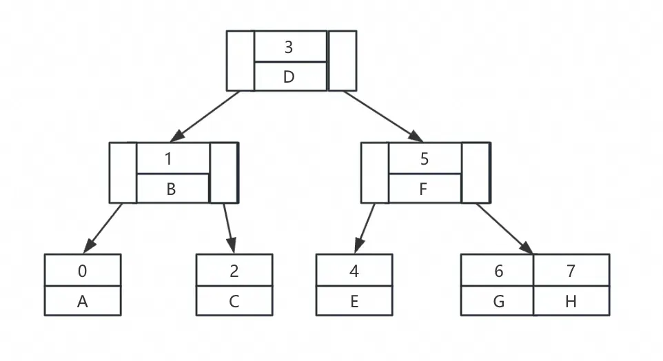 B+Tree是一个多叉树,即子节点的数量可以大于2,与之相对的红黑树最多只有2个子节点。B+Tree中一个节点的子节点数目的最大值就是B+Tree的阶,比如8阶B+Tree最多有8个子节点。B+Tree通过增加子节点的数量可以大幅增加单层B+Tree的节点数(比如3层8阶的B+Tree 第三层的节点数等于8*8*8=252,3层的红黑树第三层的节点数等于2*2*2=8),从而大幅降低整体的树高度,减少查询过程中的磁盘访问,提升读写效率,比如图中树的高度是3,从根节点到叶子节点只需要3次磁盘访问即可返回。
