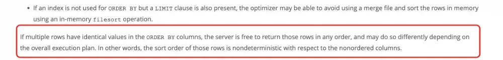 为了保证排序结果的稳定,只能基于索引排序或者把主键ID加入到排序字段中。