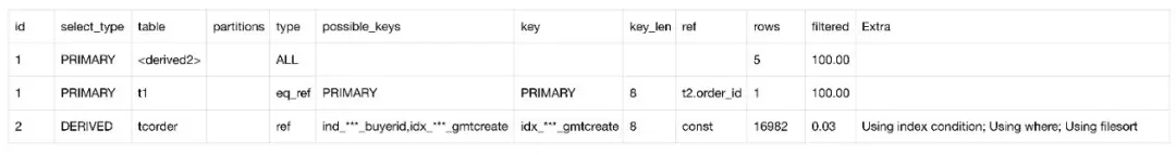 明确增加order_id排序的原因后,就制定了一种风险相对较小的优化方式,把非tm2订单列表即不带m_tid字段的分页查询请求中的order_id排序去掉,预期这类SQL应该走老索引ind_***_buyerid,从而保证返回的订单列表的稳定。放量完成后发现不带m_tid字段的分页查询请求也会走到新索引 idx_****_mtid,如下: