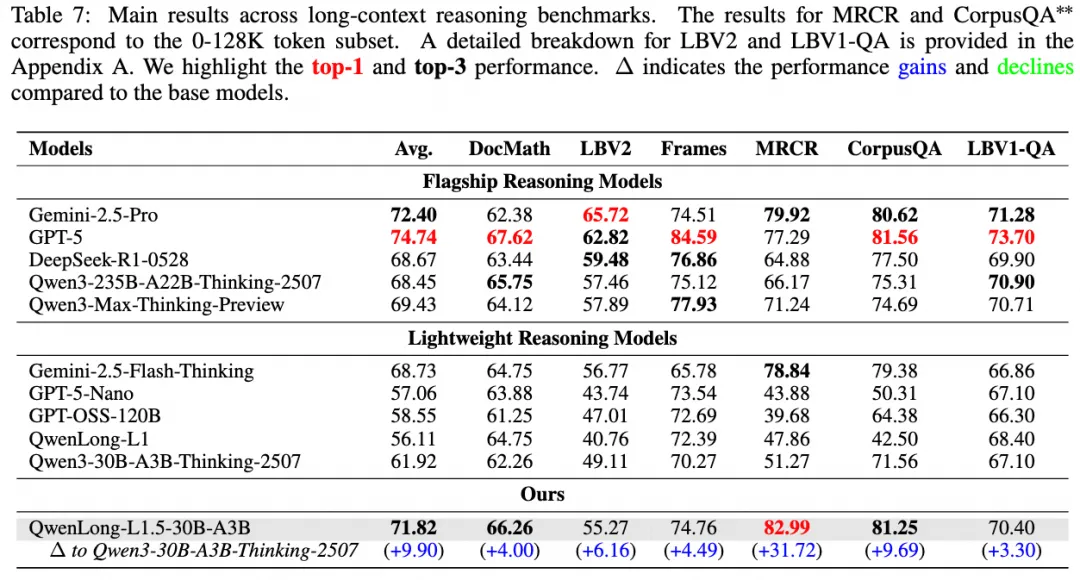 QwenLong-L1.5 在多个权威长文本推理基准上取得了不俗的成绩