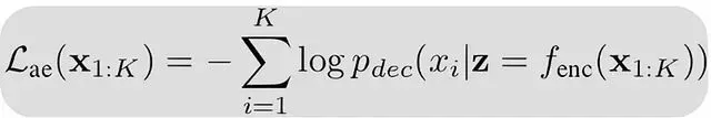 传统自编码器创建潜在空间 z,用作解码器重建输入的先验知识,公式摘自原始 CALM 论文。