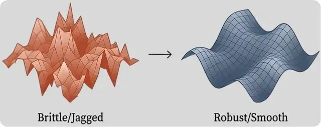 解码器对噪声的容忍度变高了。潜在空间里的小扰动只会让输出产生小变化,不会导致彻底崩溃。