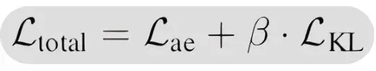 变分自编码器学习目标的表示,beta 作为平衡 KL 散度贡献的小超参数,允许对潜在空间采样的空间约束较少。公式摘自原始 CALM 论文。
