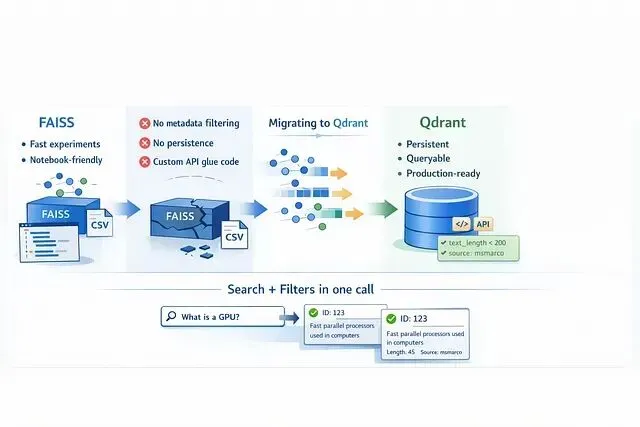FAISS 适合离线研究和快速实验,但要在生产环境跑起来Qdrant 提供了必需的基础设施。如果还在用额外的 CSV 文件来理解向量含义该考虑迁移了。
