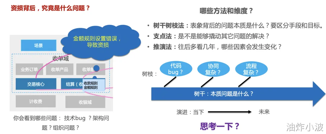 1)找树干:是升维思考,从子节点往上回溯,再从根节点往下遍历,才能找到更多解决问题的可能。就如只是找一匹跑的更快的马,那就不会发明出汽车。