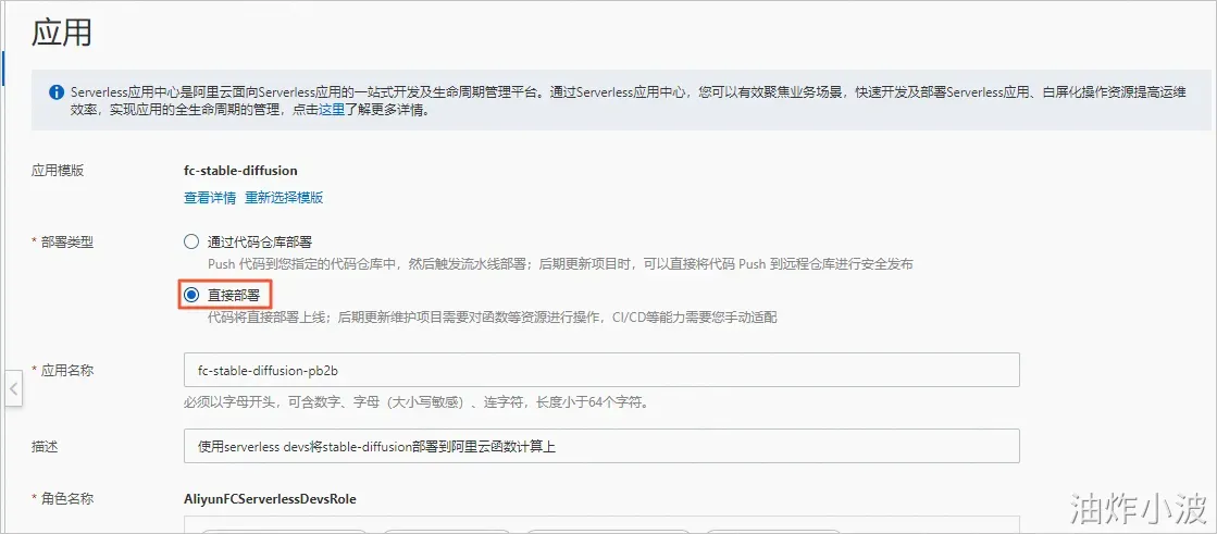 注意:部署应用之后会产生函数计算资源使用费用,计费情况详情请参考计费概述。