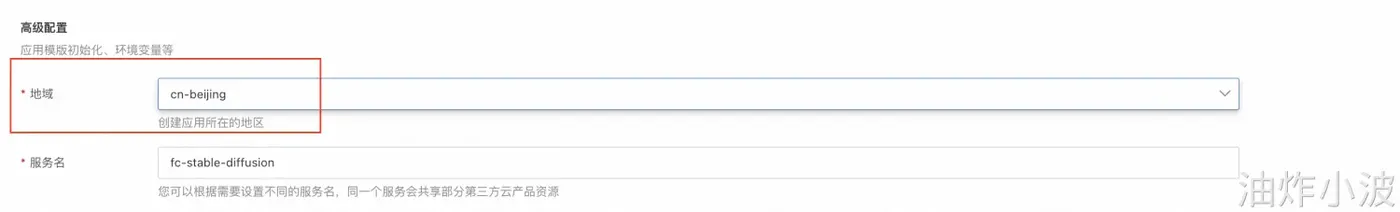 1选择地域,应用可支持部署地域为北京、杭州、上海、深圳,请选择任意一地域。