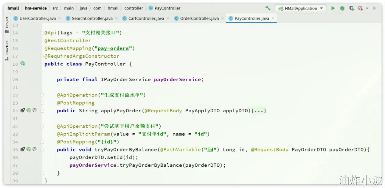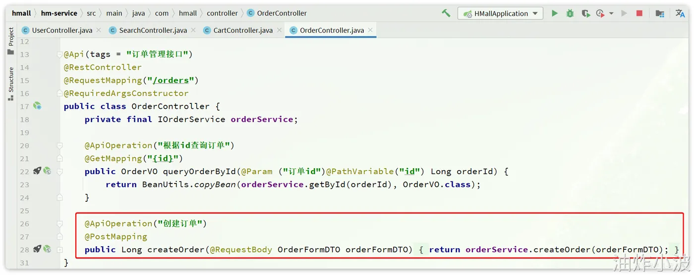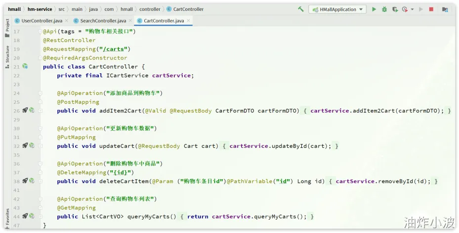 把hm-service中的与购物车有关功能拷贝过来,最终的项目结构如下: