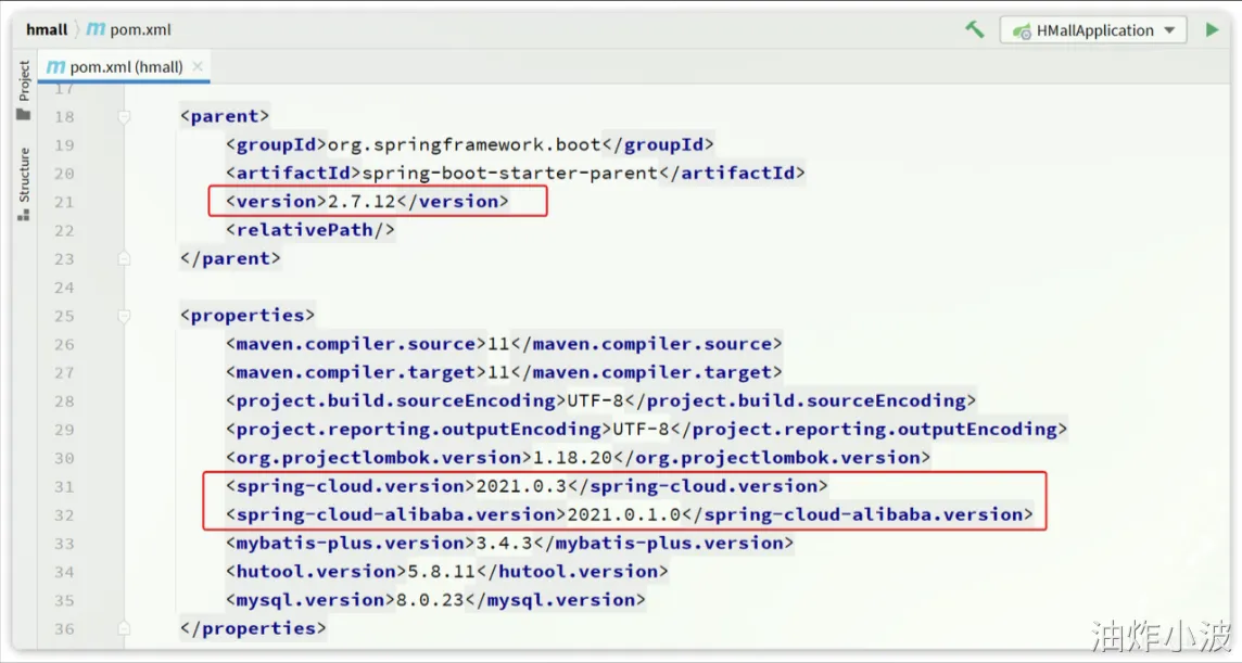 在pom.xml中重点定义了Spring Boot、Spring Cloud和Spring Cloud Alibaba的版本号: